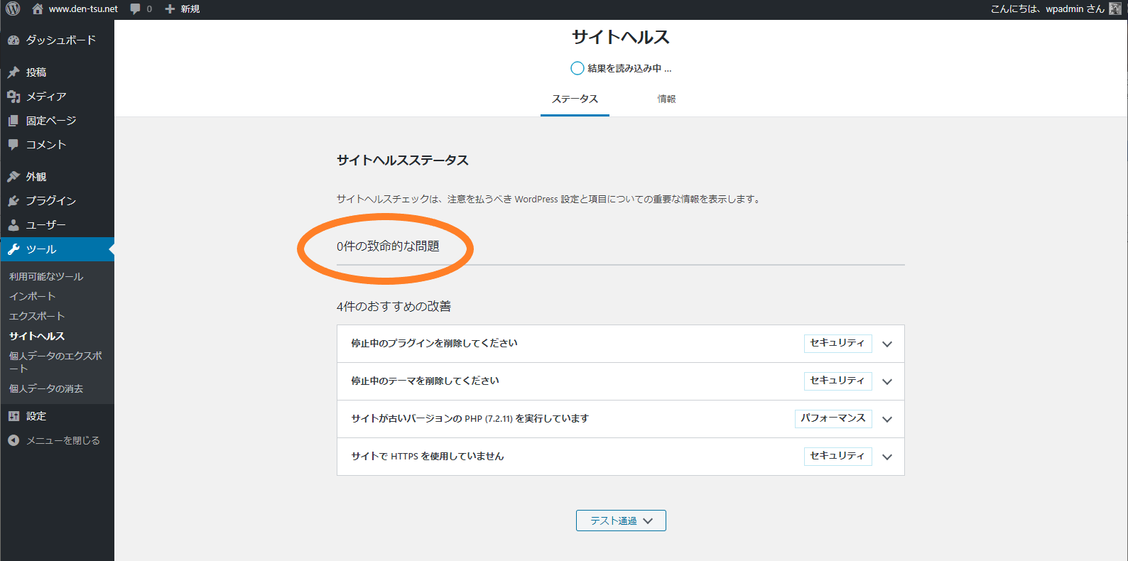 まだ「1つ以上の必須モジュールが存在しません」と表示されます。